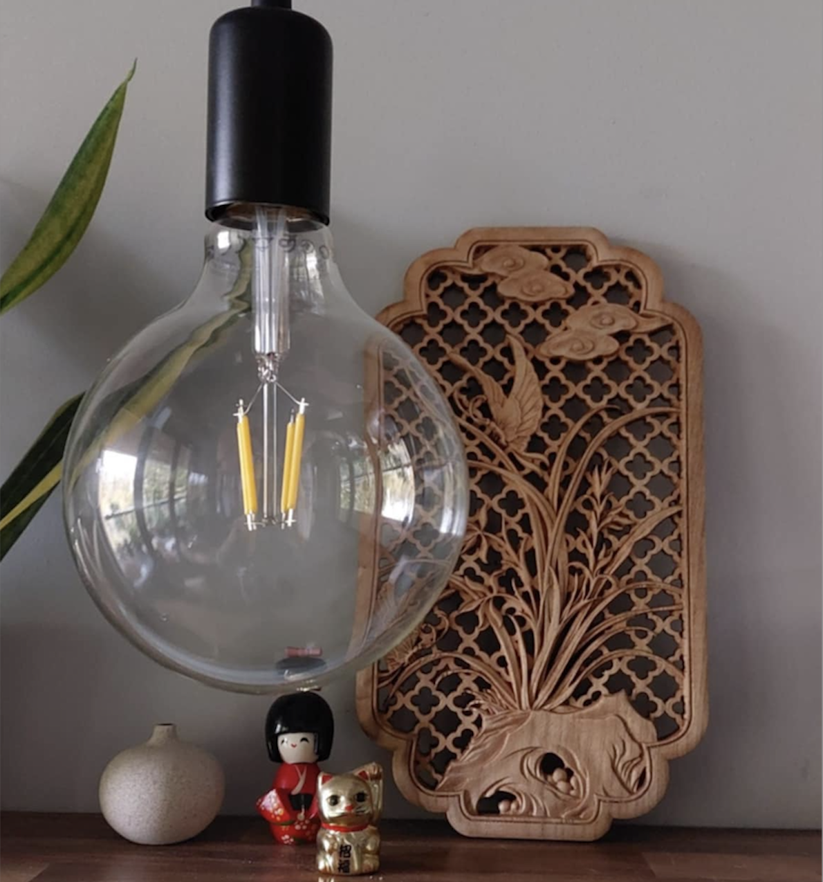ręcznie rzeźbiona z drewna kamforowego.